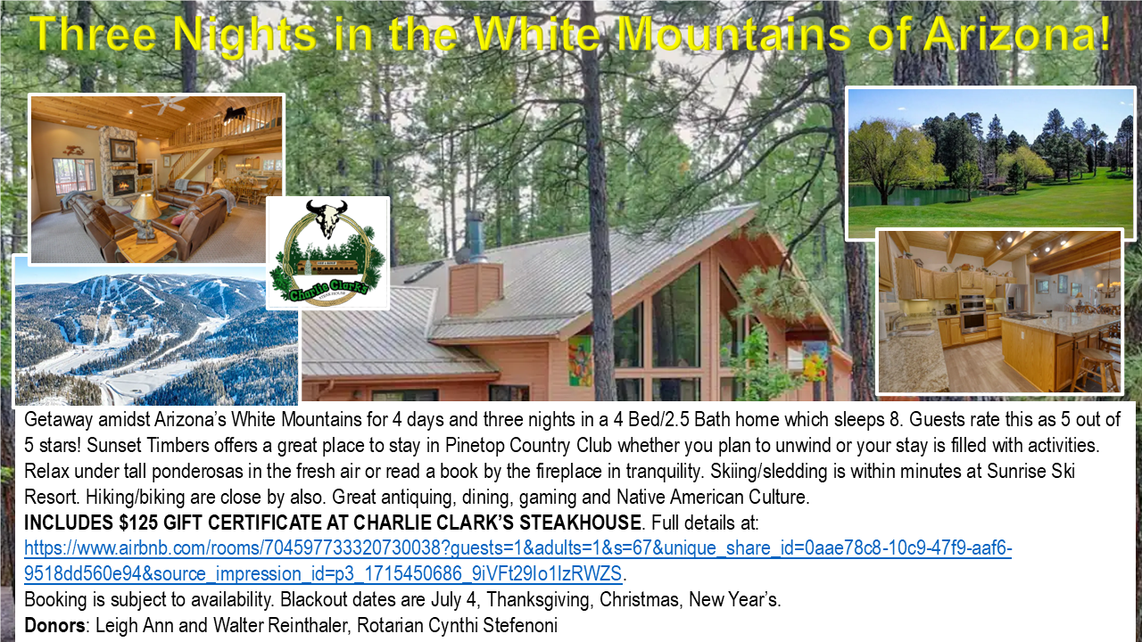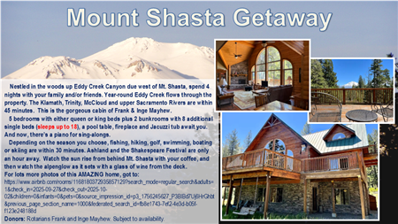 Full size photos of the prizes for the Live Auction and the Raffle. Click on an image to enlarge it OR Play the slide show to see all images.
